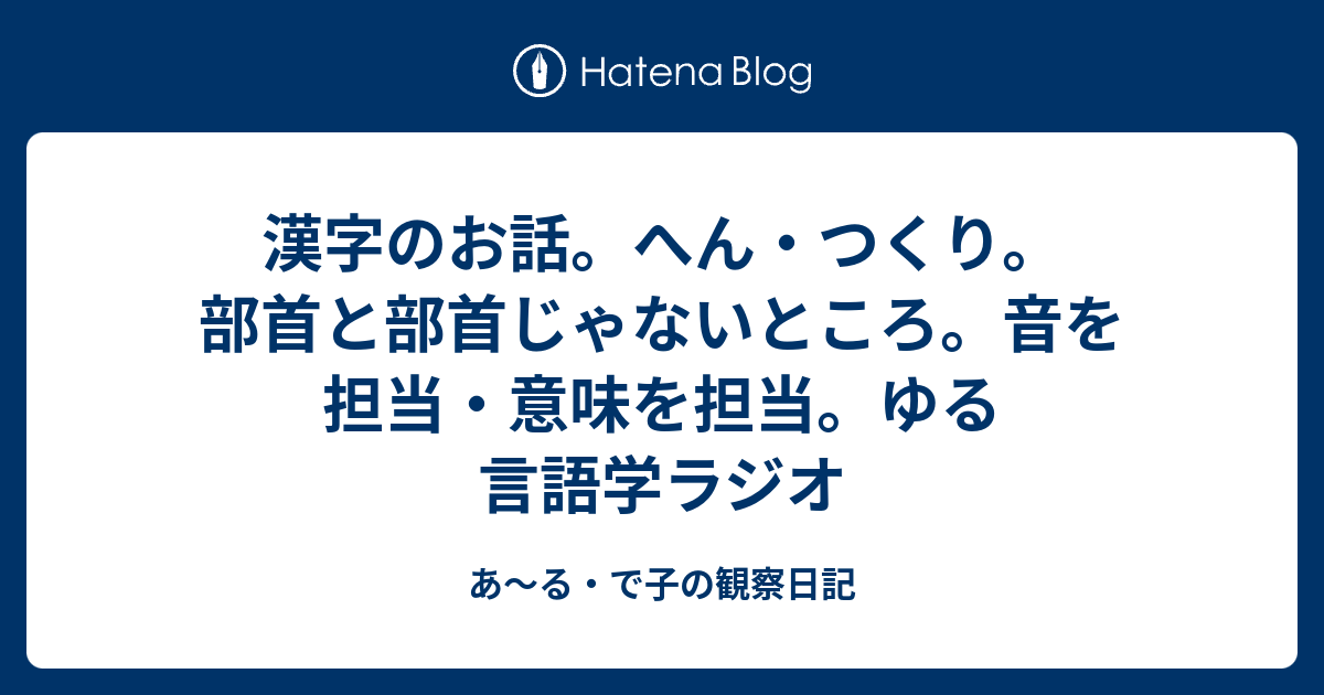 漢字のお話 へん つくり 部首と部首じゃないところ 音を担当 意味を担当 ゆる言語学ラジオ あ る で子の観察日記